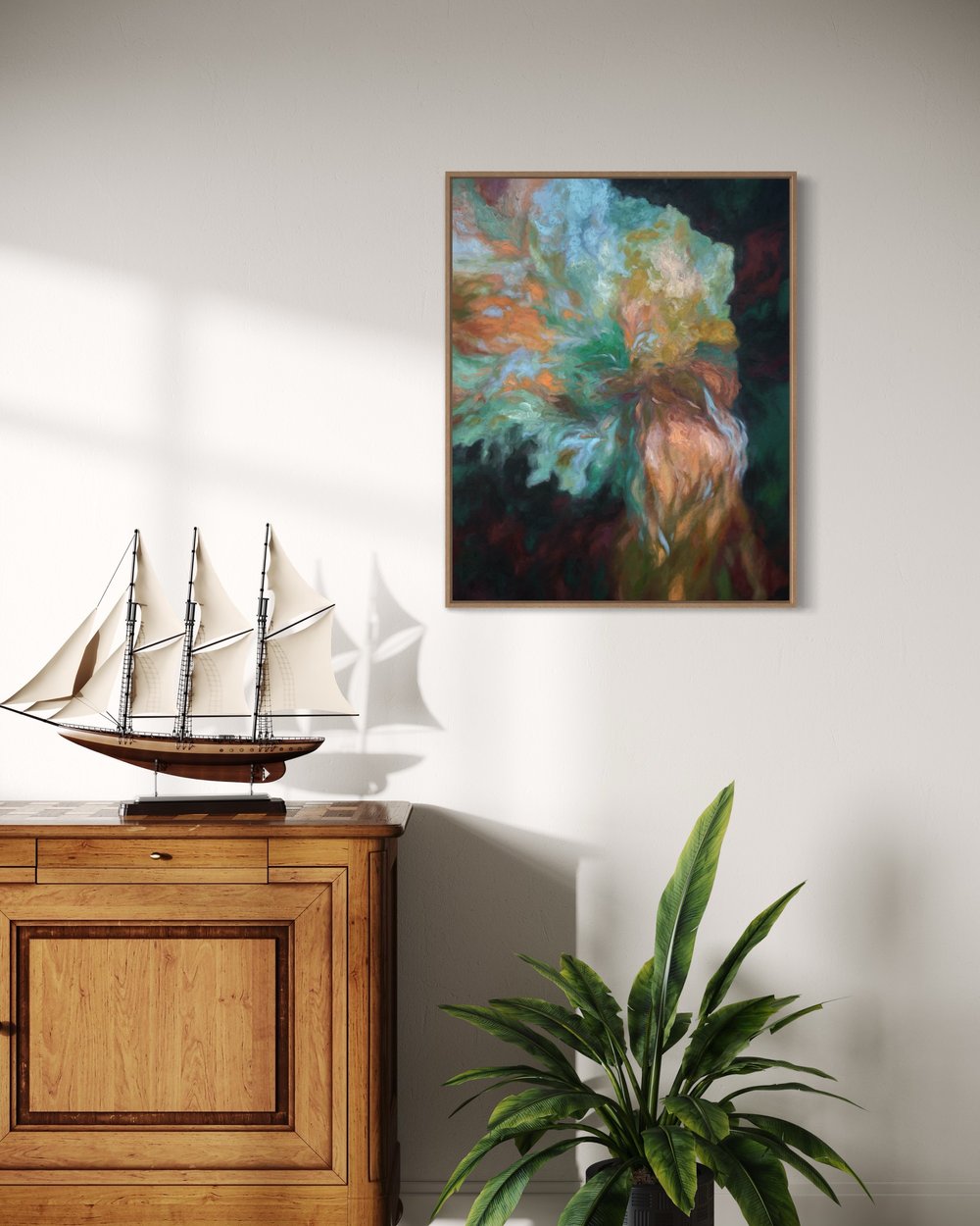Memories of Tomorrow is a 30x24in oil painting on archival quality stretched canvas. The piece comes ready to hang, with wiring on the back.