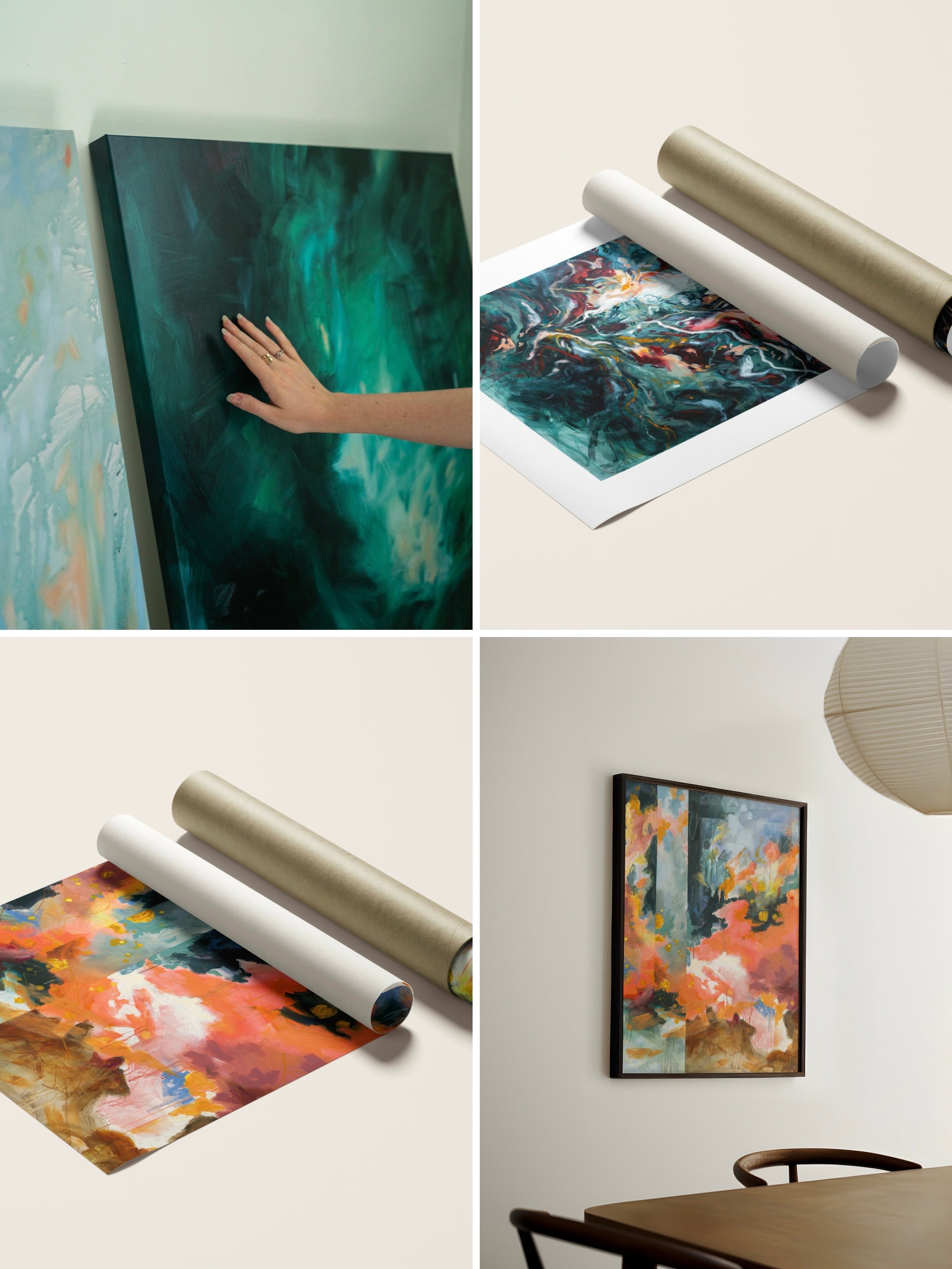 Rolled (un-stretched) canvas is shipped in a tube for safe travel. These prints provide easy framing options, especially for smaller sizes. These work well with most frames you find at home decor stores. For larger sizes, you can take them to a framer for custom framing.