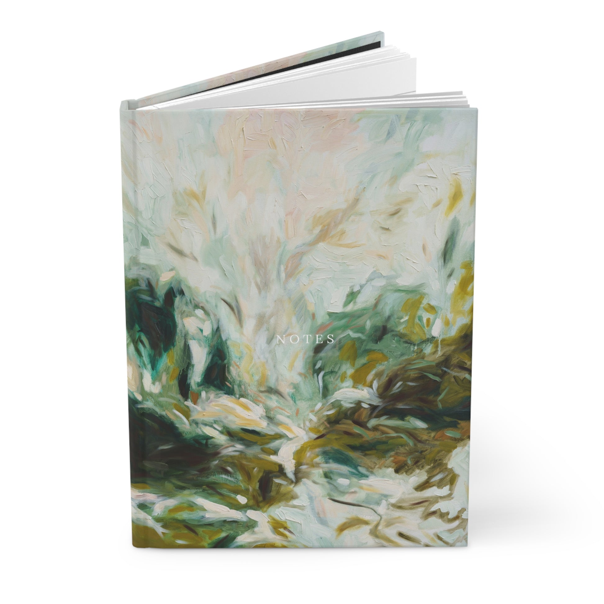 This matte hardcover notebook features one of my favorite paintings I’ve created, Remember Thy Wonders of Old. The painting’s image is mirrored on the front and back covers, and the notebook is 5.75” x 8” in size. With 150 lined pages, it works wonderfully for daily note-taking, brainstorming, planning, journaling, or whatever else inspires you to write.
