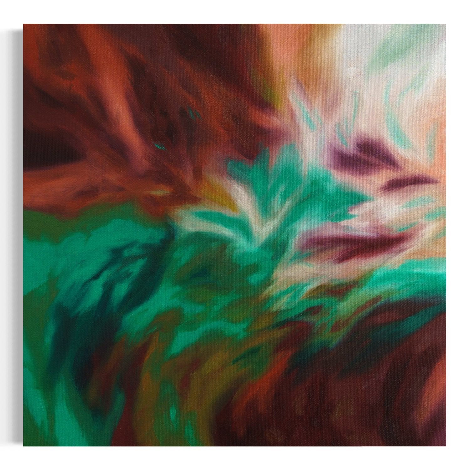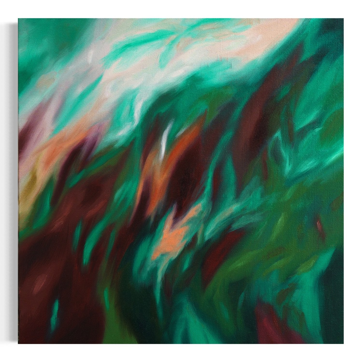 The Dawning of Crimson and Emerald Seas is a triptych set of 12x12in oil paintings on archival quality stretched canvas.